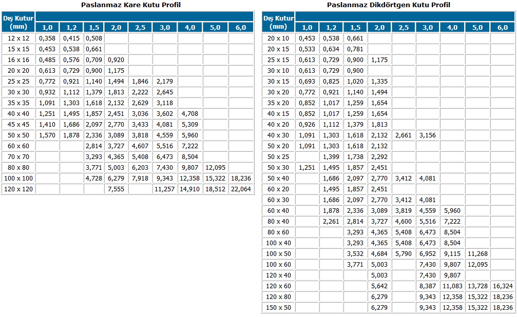Paslanmaz Profiller, Paslanmaz Profil fiyatları, dikdörtgen Paslanmaz Profiller, kare Paslanmaz Profiller